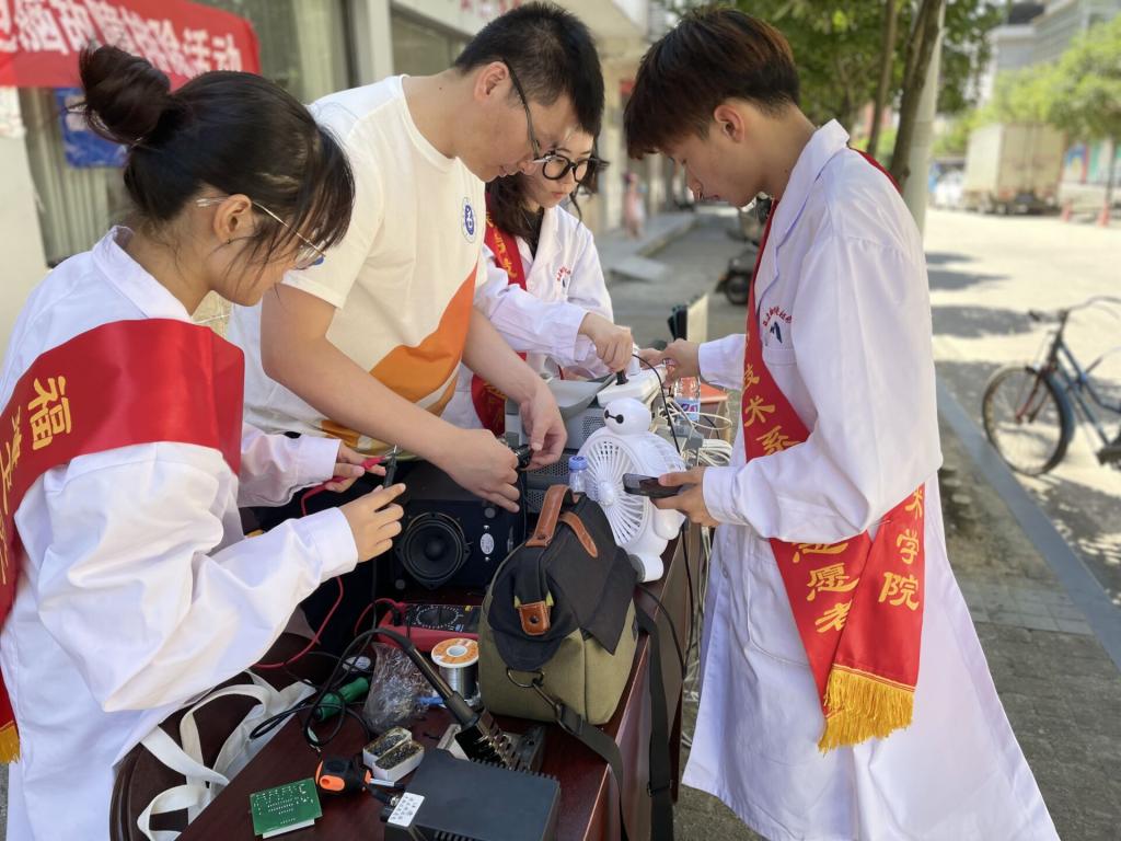 為了保障維修成效,師生們準備充分,攜帶了萬用表、電烙鐵、螺絲刀、吸錫器等專業(yè)工具和數(shù)字存儲示波器、數(shù)控直流電源、函數(shù)信號發(fā)生器、電容電感測量儀等精密檢測儀器,以及一些常規(guī)小配件。大家分工明確、積極宣傳、團結協(xié)作,聞訊而來的村民絡繹不絕,紛紛將家中因損壞閑置的小家電帶到活動現(xiàn)場。