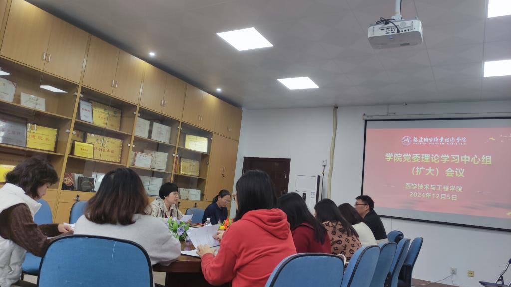 12月5日,醫(yī)學(xué)技術(shù)與工程學(xué)院召開黨委理論學(xué)習(xí)中心組(擴(kuò)大)會議,主要學(xué)習(xí)習(xí)近平強(qiáng)軍思想、習(xí)近平文化思想,習(xí)近平總書記在中共中央政治局第十七次集體學(xué)習(xí)時、在安徽考察時、在湖北考察時發(fā)表的重要講話精神,同時繼續(xù)深入學(xué)習(xí)全國教育大會精神。學(xué)院黨委書記柯瓊鶯主持會議,學(xué)院黨委委員、黨支部書記等參加會議。