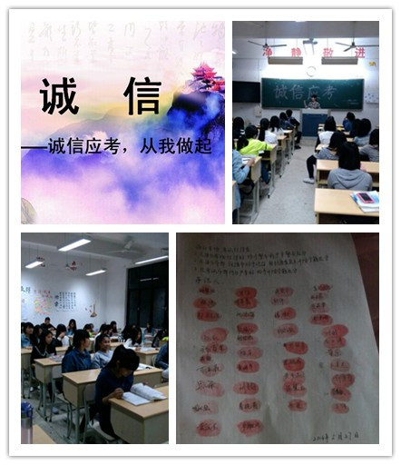 “學(xué)道存乎信,立信存乎誠(chéng)”,師生們合唱歌曲《誠(chéng)信》,表達(dá)了對(duì)誠(chéng)信的贊美和向往,拉開(kāi)了道德講堂的序幕。誠(chéng)信是中華民族的傳統(tǒng)美德,孔子和陶行知等教育家的治學(xué)也以誠(chéng)信為綱,同學(xué)們聲情并茂地誦讀了先賢們的諄諄教誨,理解著誠(chéng)信的厚重。隨后,輔導(dǎo)員結(jié)合商鞅的立木為信、周幽王烽火戲諸侯的史實(shí),通過(guò)對(duì)比說(shuō)明誠(chéng)信的重要性,并引導(dǎo)同學(xué)們以“講誠(chéng)信吃虧嗎”為辯題,講述一個(gè)身邊的誠(chéng)信故事。通過(guò)多方思維和經(jīng)驗(yàn)的碰撞與討論,大家更深刻地理解了誠(chéng)信的重要性。緊接著利用教室多媒體,師生共同觀看教育部誠(chéng)信考試宣傳片,重讀學(xué)??荚囘`紀(jì)的處理規(guī)定,以規(guī)章紀(jì)律強(qiáng)調(diào)不誠(chéng)無(wú)信的后果。最后由班委帶頭,進(jìn)行集體宣誓“期末考試是檢驗(yàn)我們的學(xué)習(xí)狀況,不僅是一場(chǎng)文化考試,也是一場(chǎng)道德品質(zhì)的考試,我們將誠(chéng)信應(yīng)考!”,同時(shí)也以承諾書(shū)形式記錄下同學(xué)們的決心。