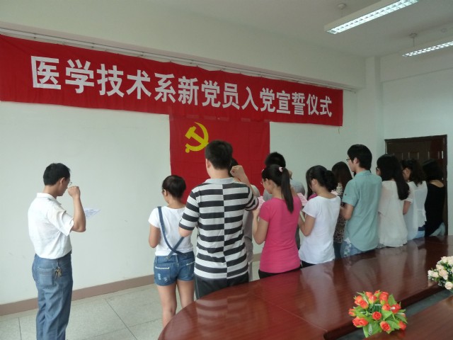 2012 年6 月 22日上午,醫(yī)學(xué)技術(shù)系黨總支在系會議室組織進(jìn)行新黨員入黨宣誓儀式。儀式由洪聿榮書記主持,到會的還有各黨總支委員和黨支部書記。