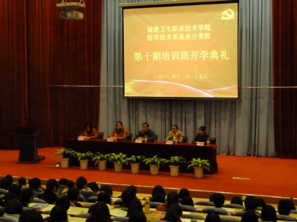 2012年12月25日晚,醫(yī)學(xué)技術(shù)系在學(xué)術(shù)廳舉行第十期業(yè)余黨校開(kāi)班儀式。本次活動(dòng)由黃小芳老師主持,出席的人員有系黨總支洪聿榮書(shū)記、各班輔導(dǎo)員以及學(xué)員們。