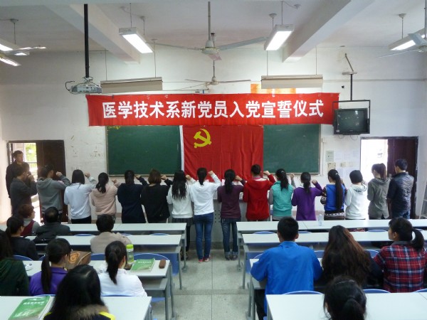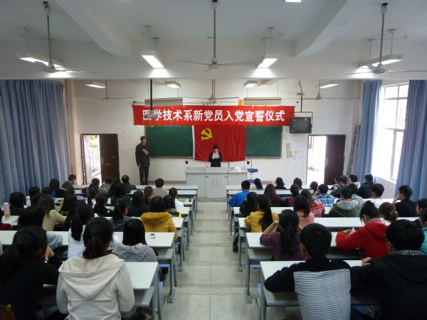 2013 年3月 12日下午,醫(yī)學(xué)技術(shù)系黨總支在系第一階梯教室進(jìn)行新黨員入黨宣誓儀式。儀式由洪聿榮書(shū)記主持,到會(huì)的還有系黨總支委員、黨支部書(shū)記和各班級(jí)輔導(dǎo)員。