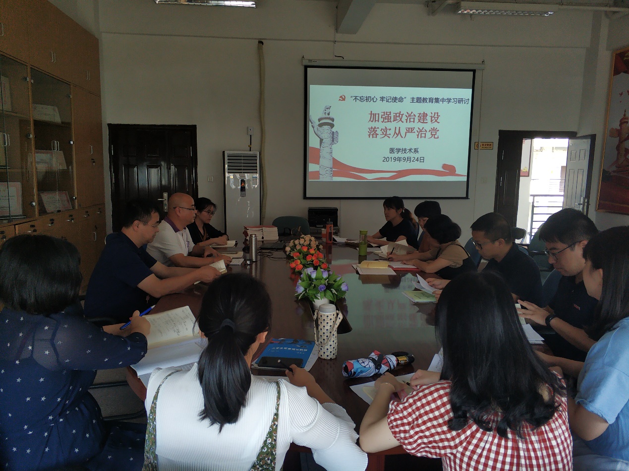 9月24日下午,醫(yī)學(xué)技術(shù)系黨總支在系部301會議室開展“加強政治建設(shè),落實全面從嚴(yán)治黨”專題第二場學(xué)習(xí)研討。本次會議由醫(yī)學(xué)技術(shù)系黨總支負責(zé)人邱滾忠同志主持,醫(yī)學(xué)技術(shù)系領(lǐng)導(dǎo)班子、各黨支部書記、全體輔導(dǎo)員參與。