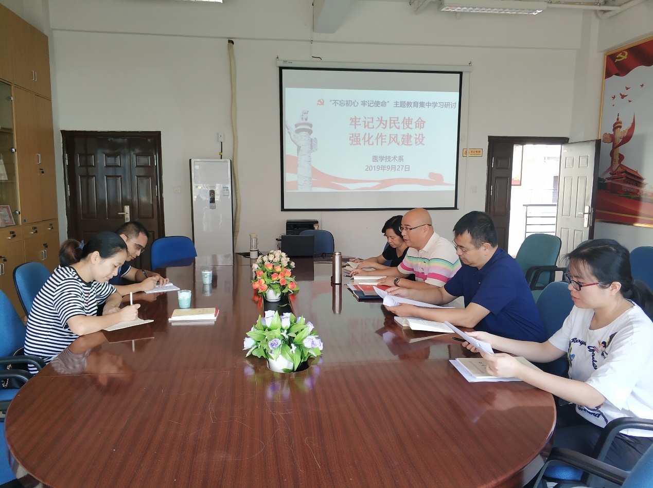 9月27日,醫(yī)學技術(shù)系黨總支在系部301會議室開展“牢記為民使命,強化作風建設(shè)”專題第一場學習研討。本次會議由醫(yī)學技術(shù)系黨總支負責人邱滾忠同志主持,醫(yī)學技術(shù)系領(lǐng)導班子參與,學院巡回指導六小組成員臨床醫(yī)學系黨總支副書記陳潔、組織員葉家濤列席。