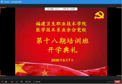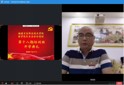 2020年6月7日,醫(yī)學(xué)技術(shù)系舉行第十八期業(yè)余分黨校培訓(xùn)班開班儀式。本次開班通過網(wǎng)絡(luò)平臺線上開展,醫(yī)學(xué)技術(shù)系黨總支負(fù)責(zé)人邱滾忠老師,第一黨支部書記林雪金老師、第二黨支部書記鐘偉雄老師、學(xué)生黨支部書記黃玲云老師,以及97名學(xué)員共同參加本次開班儀式。本次開班由18檢驗302班江鵬同學(xué)主持。