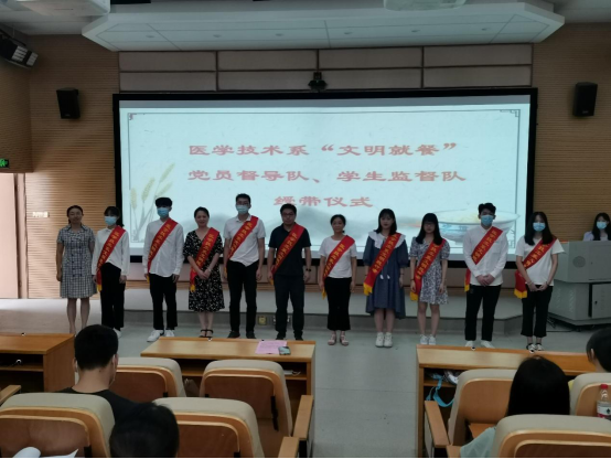 為了將“厲行節(jié)約,反對浪費”的精神貫徹到實處,活動中成立了“文明就餐”黨員督導隊和學生監(jiān)督隊。黃銘珊副院長親自為師生代表佩戴綬帶,鼓勵師生做文明踐行者。醫(yī)學技術系黨總支陳俊穎書記作了活動總結講話,呼吁醫(yī)學技術系師生行動起來,踐行“光盤行動”,讓節(jié)約精神在學院中蔚然成風?;顒幼詈?,全體師生在活動橫幅上簽名,表明自己堅決制止餐飲浪費行為的決心。
