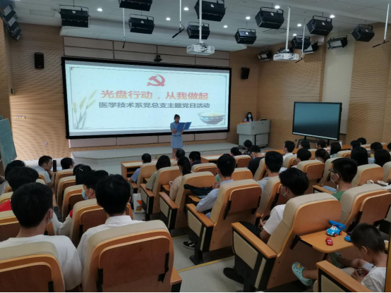 為深入貫徹習近平總書記對制止餐飲浪費行為的重要指示,進一步加強愛糧節(jié)糧的宣傳教育,2020年9月10日,醫(yī)學技術系黨總支于實訓樓錄播室開展“光盤行動,從我做起”主題黨日活動。醫(yī)學技術系黨員教師、入黨積極分子代表及團學干部共50余人參加了本次活動,學院黃銘珊副院長以普通黨員身份共同參加了活動。