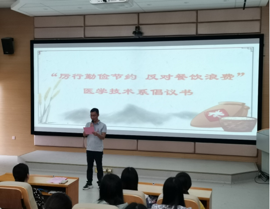團總支曾慶才老師向與會師生宣讀了醫(yī)學技術系“厲行勤儉節(jié)約,反對餐飲浪費”倡議書,號召師生從現(xiàn)在做起,從自身做起,成為厲行勤儉節(jié)約,反對餐飲浪費的帶頭人。