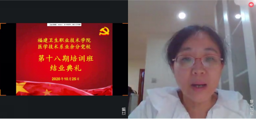 日,醫(yī)學(xué)技術(shù)系舉行第十八期業(yè)余分黨校培訓(xùn)班結(jié)業(yè)儀式。本次結(jié)業(yè)儀式通過(guò)網(wǎng)絡(luò)平臺(tái)線上開(kāi)展,醫(yī)學(xué)技術(shù)系黨總支書(shū)記