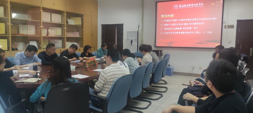 會上,醫(yī)學(xué)技術(shù)系副主任吳香書、系黨總支副書記林燕依次做了交流發(fā)言。吳香書交流了學(xué)習(xí)黨的十九屆五中全會精神的心得體會,提出要實事求是,在經(jīng)濟發(fā)展大勢中把握方向;堅定自信,在復(fù)雜環(huán)境中做好自己;具備擔(dān)當(dāng),正確把握工作職責(zé)做好自己的工作。林燕交流了學(xué)習(xí)“崇尚科學(xué) 遠(yuǎn)離病毒 防范邪教”的心得體會,認(rèn)為要從提高思想認(rèn)識、加強宣傳教育、加強理論學(xué)習(xí)等方面著手,引導(dǎo)師生崇尚科學(xué),反對邪教。