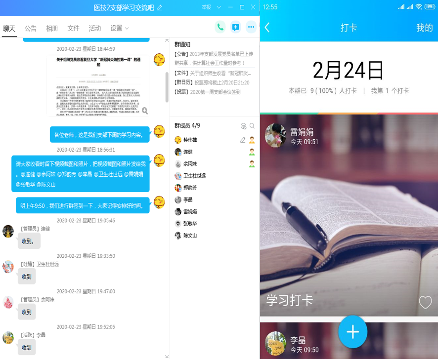 線上聆聽完兩位專家的講授,醫(yī)學(xué)技術(shù)系黨總支組織各支部開展支部大會,對“新冠肺炎防控第一課”進(jìn)行線上學(xué)習(xí)交流。