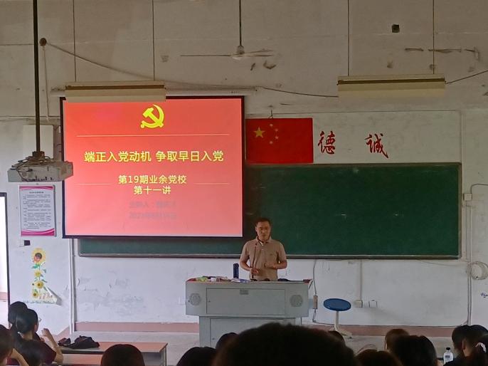 6月16日,學生黨支部書記曾慶才老師講授黨課《端正入黨動機 爭取早日入黨》。他介紹了發(fā)展黨員的工作程序,強調(diào)黨員發(fā)展必須把政治標準放在首位,鼓勵學員們端正入黨動機,爭取早日入黨。