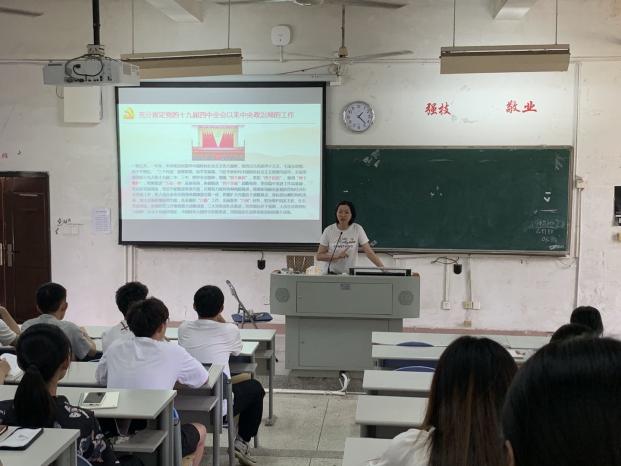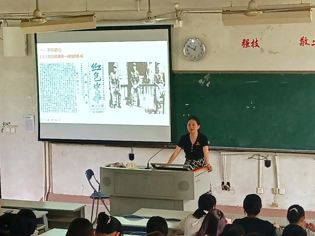 6月15日,馬克思主義學院龍慧老師為同學們宣講習近平新時代中國特色社會主義思想。她從學習古田精神,建設一流強軍展開,為同學們深入闡述了習近平總書記建軍思想。