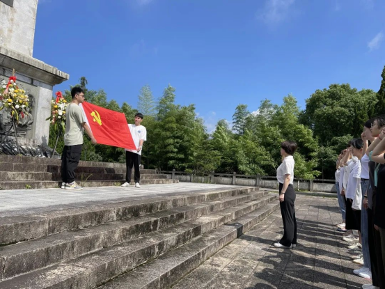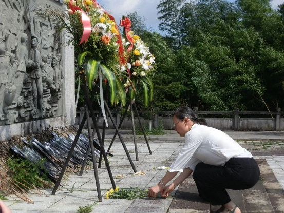 在革命烈士紀(jì)念碑前,黨員們莊嚴(yán)宣誓,重溫入黨誓詞,向紀(jì)念碑默哀、鞠躬致敬。林燕同志向革命烈士敬獻鮮花,表達對革命先烈們深切的緬懷和崇高的敬意。