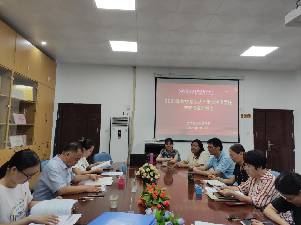 醫(yī)學(xué)技術(shù)系黨總支書記柯瓊鶯代表黨總支匯報(bào)2022年主體責(zé)任檢查發(fā)現(xiàn)問(wèn)題整改落實(shí)情況、2023年全面從嚴(yán)治黨主體責(zé)任落實(shí)情況及典型經(jīng)驗(yàn)做法。