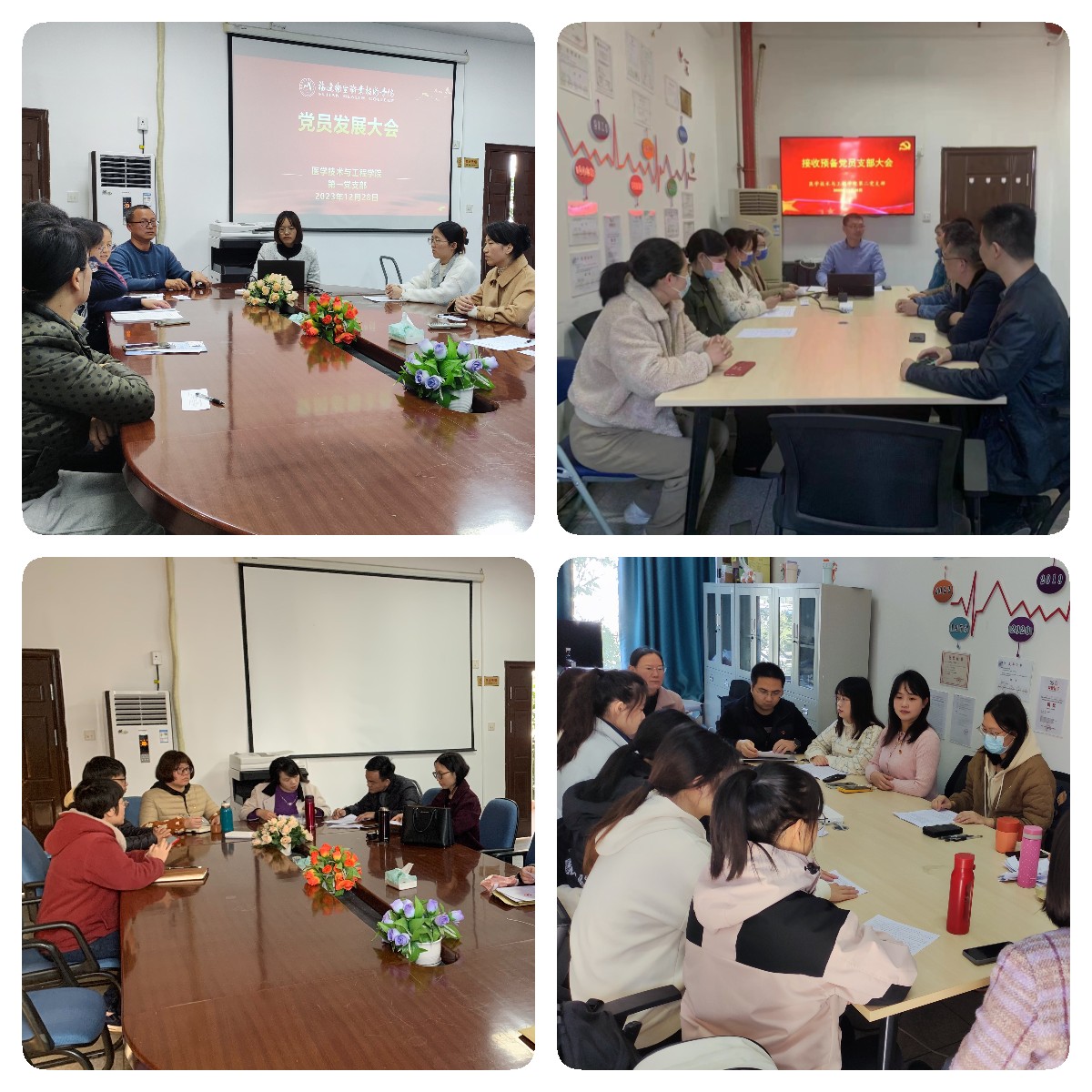 12月28日,醫(yī)學(xué)技術(shù)與工程學(xué)院第一黨支部、第二黨支部、學(xué)生第一黨支部、學(xué)生第二黨支部分別召開接收預(yù)備黨員支部大會,共接收吳沁等10名師生為預(yù)備黨員。
