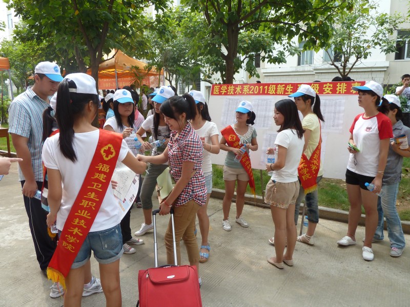 學(xué)院領(lǐng)導(dǎo)多次前來(lái)慰問(wèn)迎新工作人員。洪聿榮副書(shū)記親自坐鎮(zhèn)接待并耐心解答新生所提出的問(wèn)題,為困難學(xué)生開(kāi)設(shè)“綠色通道”,讓他們能順利報(bào)到。青年志愿者熱情迎接遠(yuǎn)來(lái)的新生,幫忙搬運(yùn)行李,引領(lǐng)到報(bào)到處辦理各種入學(xué)手續(xù)。雖然新生是第一次來(lái)到福建衛(wèi)生職業(yè)技術(shù)學(xué)院,對(duì)一些事物都不太熟悉,但是學(xué)院周到的服務(wù)和細(xì)致的工作讓他們都感受到了新家庭的溫暖。