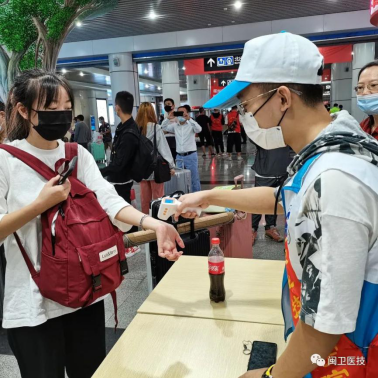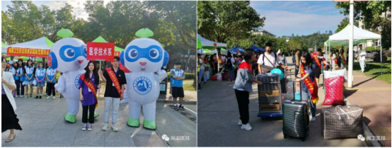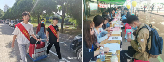 迎新工作如火如荼,到處都是忙碌的身影。一入校門就有為新生測(cè)溫、核驗(yàn)身份、掃碼注冊(cè)、發(fā)放物品的老師。還有我系志愿者舉著“醫(yī)學(xué)技術(shù)系”牌子等待著他們,為他們指引方向。熱情的保安叔叔開(kāi)著托運(yùn)車為新生們托運(yùn)行李。大家都時(shí)刻準(zhǔn)備在第一時(shí)間為新生們提供幫助。在炎炎烈日下,汗流浹背亦無(wú)暇顧及,每來(lái)一位新生,大家都爭(zhēng)先恐后地前去幫忙,不知疲憊。