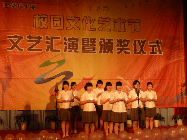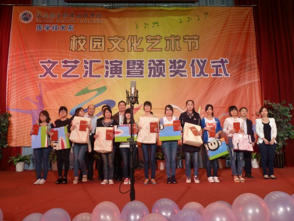 一場(chǎng)簡(jiǎn)短而熱烈的文化藝術(shù)節(jié)系列活動(dòng)頒獎(jiǎng)典禮拉開(kāi)了本次晚會(huì)的帷幕。首先由醫(yī)學(xué)技術(shù)系郭禮堅(jiān)副書(shū)記宣讀表彰決定;接著,馬少寧主任、江真君經(jīng)理相繼講話;最后,黃開(kāi)良副院長(zhǎng)進(jìn)行講話,對(duì)同學(xué)們給予肯定,并提出殷切希望。頒獎(jiǎng)典禮在喜悅、和諧的氣氛中閉幕。