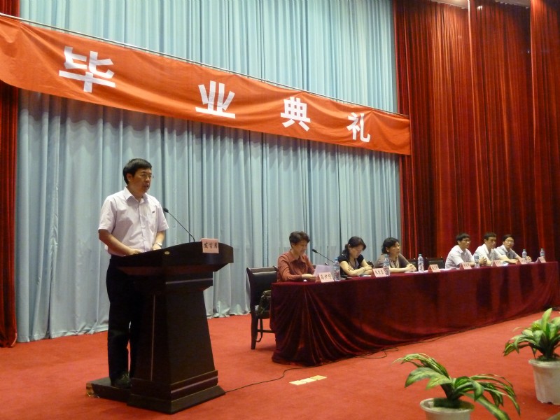 畢業(yè)典禮上,各班級(jí)代表向?qū)W院捐獻(xiàn)禮金。王國(guó)慶同學(xué)作為畢業(yè)生代表聲情并茂地發(fā)表了對(duì)母校及同學(xué)們的依依惜別之情,同時(shí)對(duì)恩師們表達(dá)了深深地崇敬和感激。教師代表曾良成老師也作了熱情洋溢的發(fā)言。最后林春明院長(zhǎng)在講話中向同學(xué)們提出三點(diǎn)殷切希望:希望同學(xué)們成為一個(gè)有志向的人、一個(gè)有擔(dān)當(dāng)?shù)娜恕⒁粋€(gè)懂感恩的人。