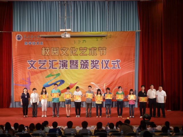 一場簡短而熱烈的文化藝術(shù)節(jié)系列活動頒獎典禮拉開了本次晚會的帷幕,同時福州金域醫(yī)學(xué)檢驗中心江真君經(jīng)理、醫(yī)學(xué)技術(shù)系馬少寧主任相繼講話,對同學(xué)提出了殷切希望。頒獎典禮在歡樂、和諧的氣氛中閉幕。