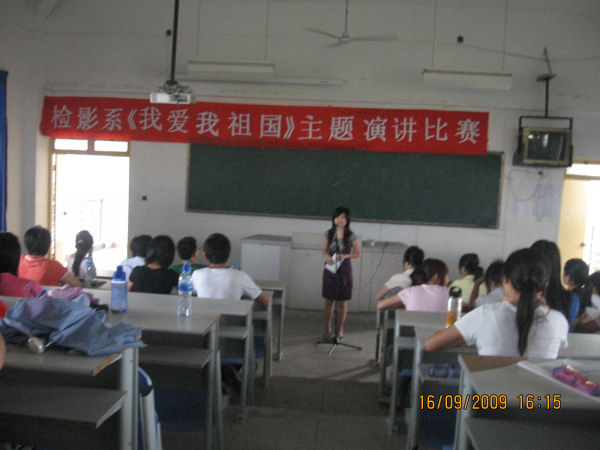 為慶祝中華人民共和國成立60周年,同樣也為了增加學(xué)生的愛國情操,增強(qiáng)他們的愛國意識(shí),檢驗(yàn)影像系于2009年9月17日在系部第二階梯教室舉行“我愛我的祖國”演講比賽。