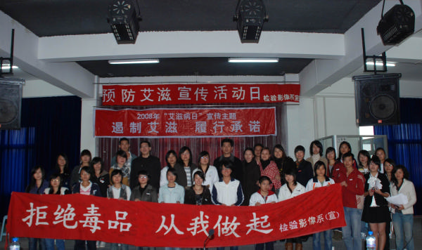 檢驗(yàn)影像系文藝部以主題“遏制艾滋,履行承諾”,于2008年12月2日下午2點(diǎn),在學(xué)生活動中心三樓舉辦了一場艾滋病知識競答活動。參加此次活動的嘉賓有:來自閩侯防疫站的工作人員和本系的老師。參賽選手分別由:護(hù)理系、藥學(xué)系、臨床醫(yī)學(xué)系、檢驗(yàn)影像系組成8個小組。