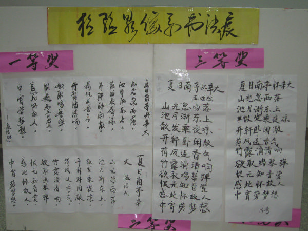 為豐富同學們的課余活動,提高對中國書法的鑒賞能力,同時發(fā)掘系部書法方面的優(yōu)秀人才,檢驗影像系于2007年10月11日下午4:00在系二階舉行書法比賽。本次比賽共收到參賽作品50余件,其參賽作品之多,書法技藝之高超,令評委驚喜。經(jīng)過評委的認真評選,最終選出一等獎2名,二等獎4名,三等獎6名,優(yōu)秀獎8名,而所有獲獎者都將獲得相應的素質拓展加分。