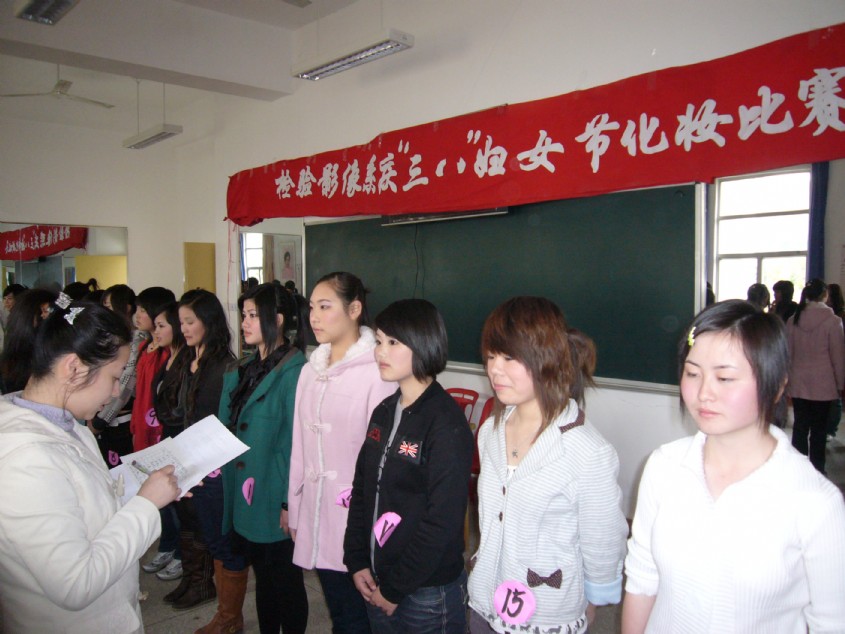 為豐富校園生活,促進(jìn)校園建設(shè),展示我院人文和諧之美,檢驗(yàn)影像系于3月11日下午在護(hù)理系美容教室舉行慶“三八”婦女節(jié)化妝比賽。