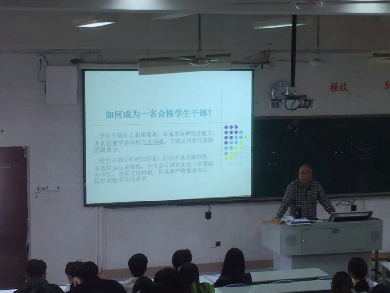 邱滾忠副書記從建設系部學生干部隊伍及作用發(fā)揮為出發(fā)點,就如何成為一名合格學生干部進行深入探究,提出勝任才是硬道理的觀點。首先,他從思想政治素質、業(yè)務素質、能力素質和心理素質四個方面引出做好一名合格的學生干部應有的個人素質要求,要具有各種綜合能力,學會與人溝通,干部之間要有強烈的凝聚力。其次,他還指出學生干部的工作宗旨要付出不求點滴回報,要嚴格要求自己做好表率作用。最后,他還引用了泰國的西巫拉帕的詩歌《重要的要能出類拔萃》,希望學員們能更加清楚的意識到作為干部的責任,要發(fā)揮自我價值,服務同學,服務學校,認真做好本職工作。