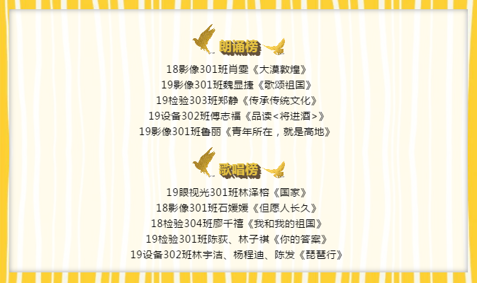 此次活動采取線上的朗誦和歌唱兩種形式的作品參賽。在活動過程中,全系同學(xué)積極參與。在作品中,每一位同學(xué)都認(rèn)真對待,飽含熱情,表現(xiàn)出對中華經(jīng)典的熱忱。同時,也感受到同學(xué)們聲音里凝聚著獨具特色的語言文字、精彩紛呈的文學(xué)藝術(shù)以及中華傳統(tǒng)文化!經(jīng)過系部各方面的綜合評選和激烈的角逐后,最終朗誦和歌唱分別擇優(yōu)選出5個優(yōu)秀作品。