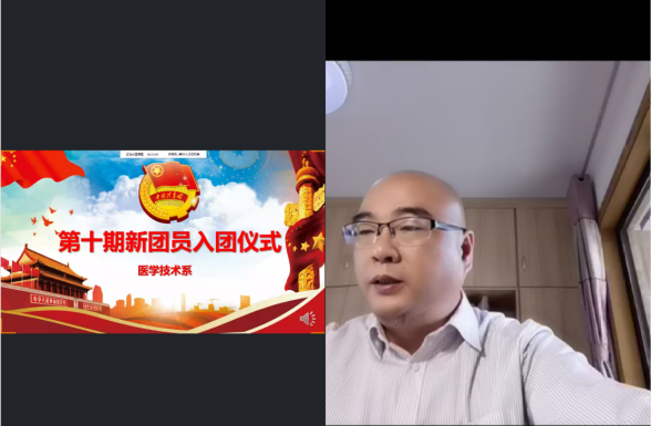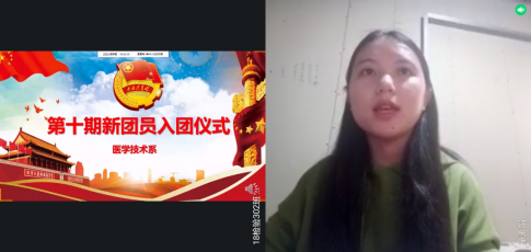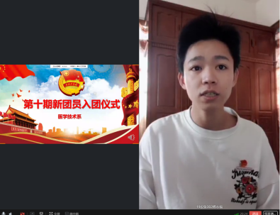 系團總支副書記江鵬同學(xué)作為本次會議的主持人,醫(yī)學(xué)技術(shù)系黨總支負責(zé)人邱滾忠副書記、系團總支書記曾慶才老師、副書記陳念文老師及各班輔導(dǎo)員,醫(yī)學(xué)技術(shù)系團學(xué)干部及30名新團員出席線上入團儀式。
