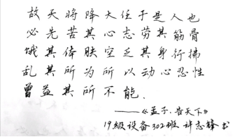 筆走乾坤恢弘氣,墨染中華四時春。在這萬物復(fù)蘇的時節(jié),我們用書法傳遞信仰,一筆一劃勾勒萬千江山。??在書法中傳承中華文化,領(lǐng)會習(xí)近平語錄,弘揚國粹魅力,同學(xué)們的藝術(shù)修養(yǎng)和審美情操在學(xué)思踐悟中不忘初心,牢記使命?,綿綿用力繪藍圖、久久為功筑夢想,讓我們把新的時代答卷書寫得更扎實、更精彩!