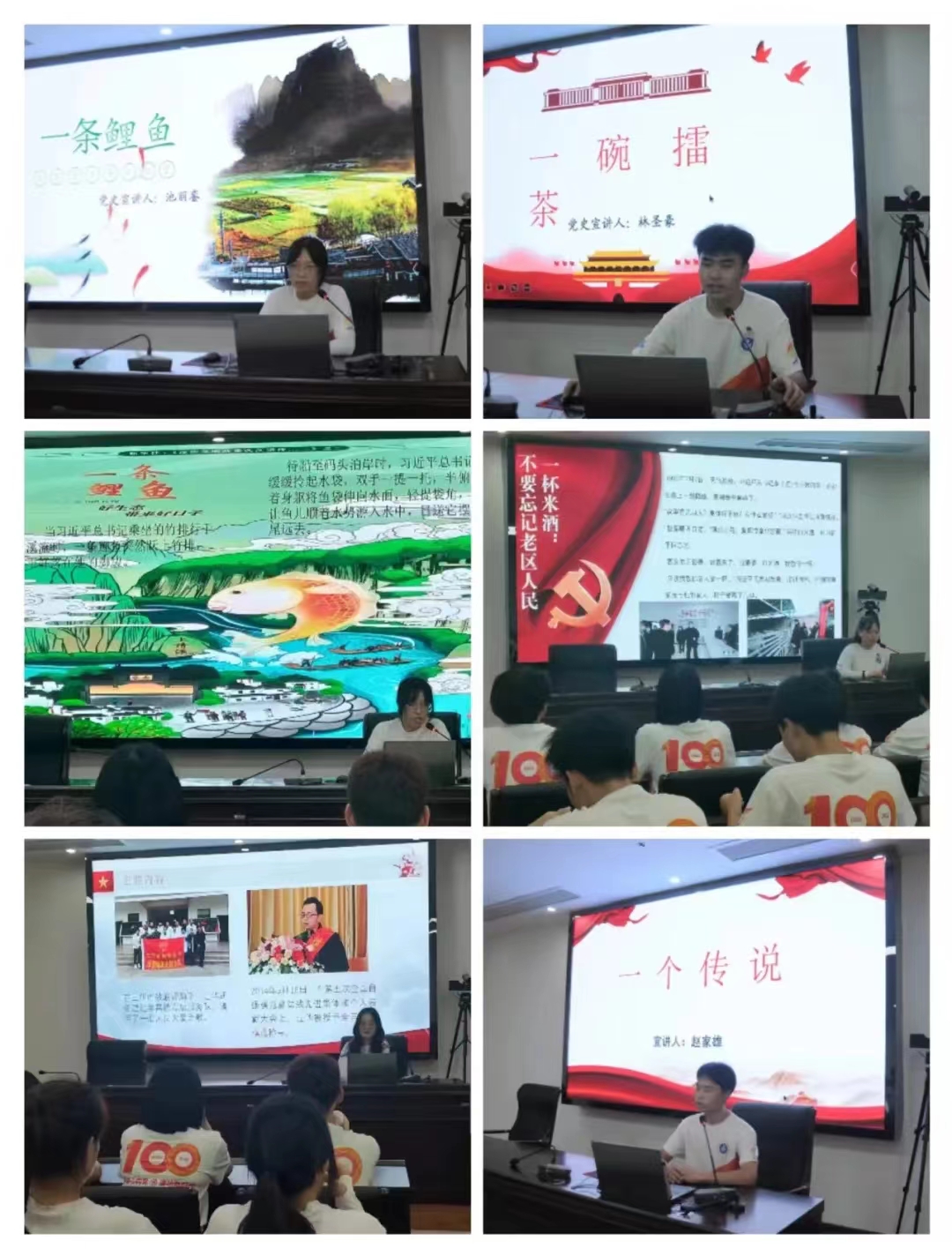 林圣豪、池麗鑾、黃思怡、陳蘇、趙家雄五位入黨積極分子生動(dòng)地講述了習(xí)近平總書(shū)記的三明故事《一碗擂茶》、《一條錦鯉》、《一杯米酒》、《一段歌聲》和《一個(gè)傳說(shuō)》。同學(xué)們深刻體會(huì)到習(xí)近平總書(shū)記多次深入三明調(diào)研的重要意義,以及對(duì)三明人民的親切關(guān)懷。