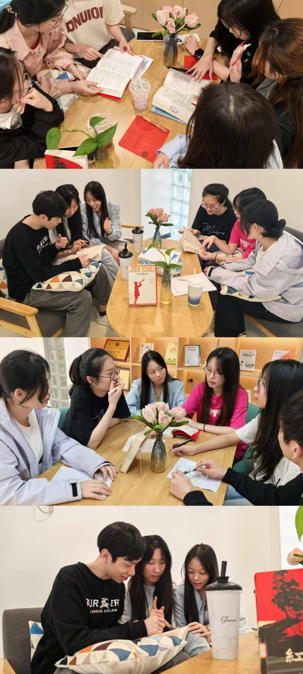 隨著活動序幕的拉開,同學(xué)們沉浸在《革命者》電影的高燃剪輯中,視頻中“以文字為刃”的革命精神,與讀書會的主題高度契合,《紅巖》里革命者在獄中繡紅旗、傳紙條,用熱血之軀守護(hù)心眼;《紅星照耀中國》則通過外國記者的鏡頭,還原了紅軍“為人民謀幸?!钡某跣?。這些文字與紀(jì)實(shí),讓我們看見:革命不僅是筆尖的吶喊,更是行動的堅(jiān)守與理想的燃燒。