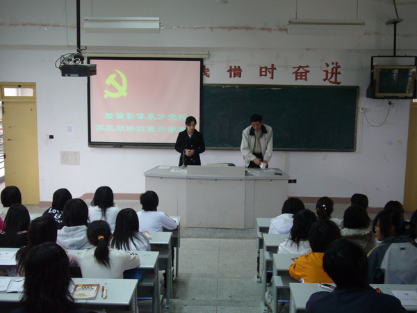 借十七大的東風(fēng),檢驗(yàn)影像系于2007年11月27日在第二階梯教室進(jìn)行第三期業(yè)余黨校開班典禮。
