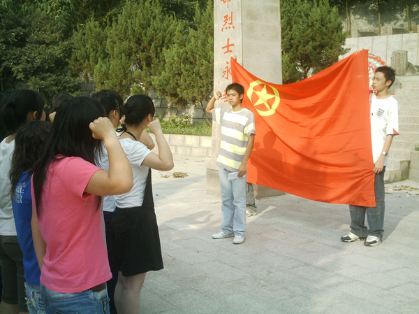 2008年5月8日下午4:00,檢驗(yàn)影像系新團(tuán)員入團(tuán)宣誓儀式在荊溪龜山烈士陵園莊嚴(yán)舉行。儀式由系實(shí)踐委員呂斌同學(xué)主持。