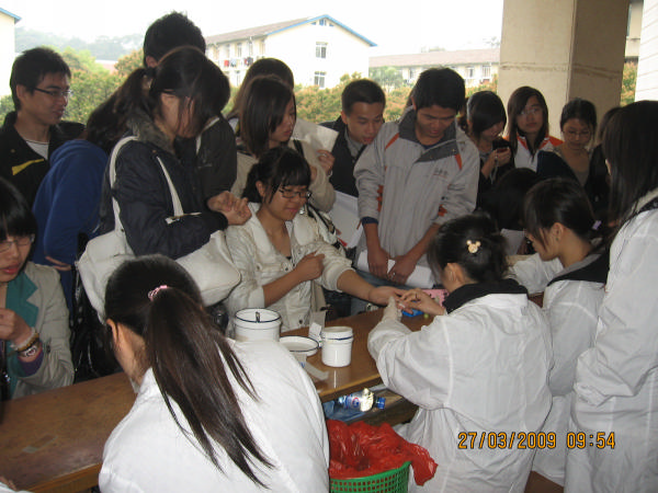 為體現(xiàn)醫(yī)務工作者救死扶傷的人文精神,檢驗影像系聯(lián)合護理系于2009年3月28日走進福州大學至誠學院開展主題為“學雷鋒,促交流,攜手文明衛(wèi)生,共創(chuàng)和諧至誠”的義工活動。 本次活動由檢驗影像系團總支、護理系團總支和福州大學至誠學院學生會主辦,在策劃和籌備中,得到各方領導、老師的大力支持。我院由口腔教師馬清璇、邵旭媛帶隊,共有53名學生參加。同學們在現(xiàn)場設立了ABO血型鑒定,測量身高、體重、肺活量、血壓、視力,辨色檢查和齲齒檢查等體檢項目。除了進行結合專業(yè)的檢查外,師生們還認真介紹口腔預防保健、血液、獻血等常識,并由護理專業(yè)學生進行現(xiàn)場急救、止血包扎的互動示范。 此次活動體現(xiàn)出我院的教學成果以及專業(yè)特色,使同學們對本專業(yè)的知識有了更進一步的了解和認識,取得了滿意的效果。而且通過本次活動增強了兩院之間的交流,構建和諧的校園文化。