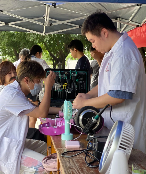 為響應(yīng)上級黨組織關(guān)于建黨100周年之我為師生辦實事活動號召,醫(yī)學(xué)技術(shù)系第二黨支部聯(lián)合系團(tuán)總支創(chuàng)新創(chuàng)業(yè)部于2021年5月20日星期四在明湖餐廳門口舉辦醫(yī)學(xué)技術(shù)系首屆科技節(jié)之小型電器義務(wù)維修及電腦故障排除活動?;顒悠陂g系黨總支書記陳俊穎、副書記林燕、系副主任鐘偉雄到場指導(dǎo)工作,醫(yī)學(xué)技術(shù)系第二黨支部全體黨員、創(chuàng)新創(chuàng)業(yè)部全體成員、醫(yī)技系維修小組成員參加活動?;顒游瞬煌昙墝I(yè)的同學(xué)駐足觀看,參與解決維修或者故障答疑的同學(xué)在本次活動中能力得到了提升。