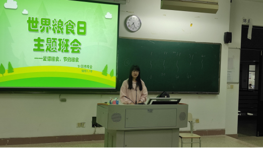 主題班會(huì)開展過程中,輔導(dǎo)員介紹了世界糧食日與國家糧食安全的主要內(nèi)容與相關(guān)知識(shí),讓學(xué)生深入了解到節(jié)約糧食與糧食安全的重要意義,各班級(jí)學(xué)生圍繞世界糧食日和全國糧食安全內(nèi)容進(jìn)行討論交流,學(xué)生們踴躍舉手發(fā)言,分享了心得感悟。最后,各班級(jí)輔導(dǎo)員就主題班會(huì)內(nèi)容進(jìn)行總結(jié),輔導(dǎo)員們強(qiáng)調(diào)愛糧節(jié)糧、科學(xué)用糧、反對(duì)浪費(fèi)意識(shí),堅(jiān)決制止餐飲浪費(fèi)行為的重要意義。