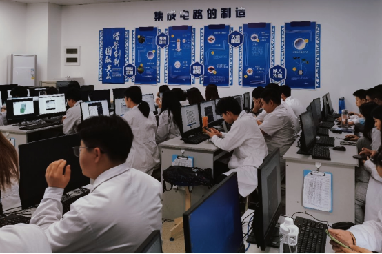2021年11月7日上午,“1+X集成電路開(kāi)發(fā)與測(cè)試(中級(jí))培訓(xùn)講師”潘清良老師給同學(xué)們帶來(lái)“1+X 集成電路開(kāi)發(fā)與測(cè)試”第二次課。首先,老師先用一個(gè)視頻——“從沙子到芯片的制作過(guò)程”導(dǎo)入今天的課程。這次課主要講《晶圓制造》,它分為三部分:1.集成電路制造基本流程、2.單晶硅片制備、3.薄膜制備、4.光刻、5.刻蝕、6.摻雜。下午,潘清良老師帶領(lǐng)學(xué)生們來(lái)到醫(yī)技樓202進(jìn)行實(shí)訓(xùn)。通過(guò)現(xiàn)場(chǎng)講授、PPT講解、AI虛擬仿真、學(xué)習(xí)通考核等形式,針對(duì)性培訓(xùn)學(xué)員的理論能力和實(shí)踐、教學(xué)能力,加強(qiáng)集成電路專(zhuān)業(yè)知識(shí),促進(jìn)院校集成電路相關(guān)專(zhuān)業(yè)的建設(shè)進(jìn)程,培育學(xué)員對(duì)“1+ X集成電路”的興趣。
