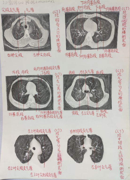 關(guān)于畫肺部CT,之所以要將解剖圖手繪出來(lái),身為影像專業(yè)的自己可以透過影像素描描繪,更準(zhǔn)確的認(rèn)識(shí)肺部在CT下的顯影,內(nèi)化成為長(zhǎng)期記憶,更利于了解掌握肺部的結(jié)構(gòu)。
