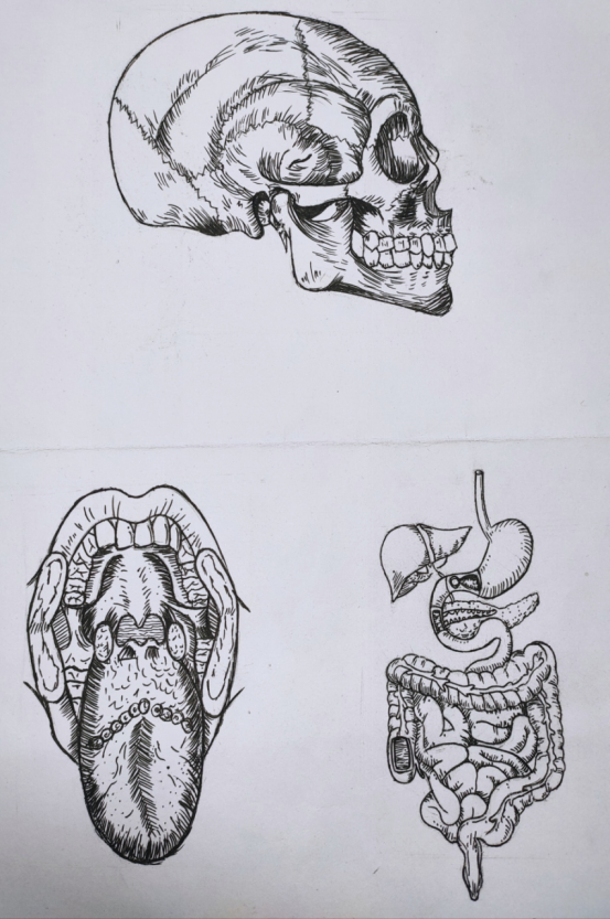 人類對(duì)圖形理解能力和記憶能力優(yōu)于文字,繪畫先于語(yǔ)言,更早于被我們?nèi)祟愡\(yùn)用。繪畫解剖圖,掌握正常人體形態(tài)和結(jié)構(gòu)。閱讀教材、描繪解剖圖、對(duì)照模型與觀察分析人體相結(jié)合,更好的幫助我們達(dá)到學(xué)以致用的目的。