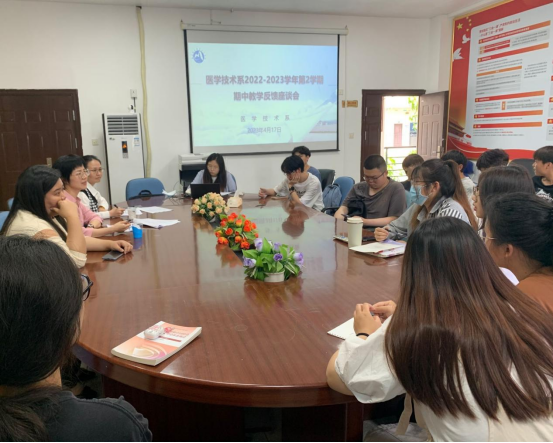 2023年4月17日中午,醫(yī)學(xué)技術(shù)系在醫(yī)技系301會(huì)議室召開(kāi)了2022-2023學(xué)年第二學(xué)期期中教學(xué)座談會(huì),校督導(dǎo)李燕平老師、羅蘭老師,醫(yī)學(xué)技術(shù)系副主任周微琳老師、教學(xué)秘書(shū)陳爍老師以及各班學(xué)生代表參加會(huì)議。