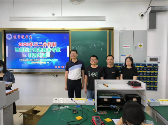2023年5月30日,醫(yī)學(xué)技術(shù)系聯(lián)合福建鐵路機電學(xué)校進行2020級智能醫(yī)療裝備技術(shù)專業(yè)的三二分段中高銜接轉(zhuǎn)段考核工作。醫(yī)學(xué)技術(shù)系副主任鐘偉雄帶領(lǐng)智能醫(yī)療裝備技術(shù)專業(yè)教師陳偉煒、陳小虎、葉靚玲親臨現(xiàn)場指導(dǎo),考核工作小組察看了全部考場,完成命題、巡考、閱卷與評分。