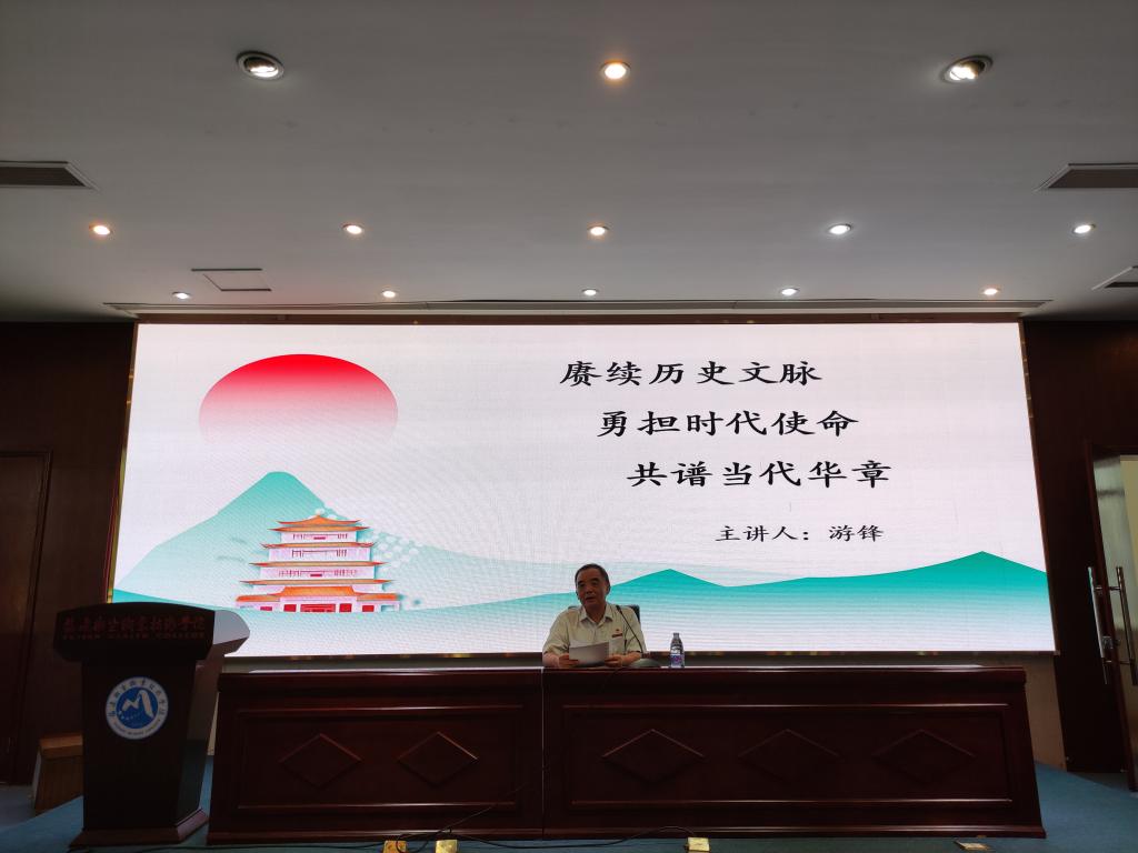 游鋒從什么是文化、中華文明的特性、青年人應(yīng)當(dāng)怎樣傳承和發(fā)揚(yáng)中華文化等三個(gè)方面出發(fā),生動(dòng)分析了中華文明的豐富內(nèi)涵,詳細(xì)闡述了文化自信的重要性,深入引導(dǎo)青年學(xué)子要勇?lián)s續(xù)歷史文脈、譜寫當(dāng)代華章。