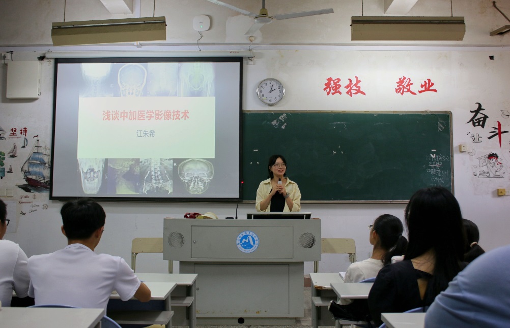 江朱希作為加拿大安大略省一家知名醫(yī)療機構的放射醫(yī)學技術員,具有豐富的實踐經驗和專業(yè)知識,對中加醫(yī)學影像技術的發(fā)展趨勢和應用前景有著深入的研究。她在講座中,從比較的視角出發(fā),和會師生們深入講解了國內和加拿大對于醫(yī)學影像技術在專業(yè)教育、職業(yè)上崗要求、工作實際方面的區(qū)別。她還分享了最新的醫(yī)學影像技術發(fā)展動態(tài),分享了她豐富的工作經驗和技巧,并深入講解了放射防護要求。她還結合個人經歷,分享了在加拿大如何通過國際醫(yī)學技術員銜接課取得相關上崗資格,為同學們進一步打開就業(yè)視角。