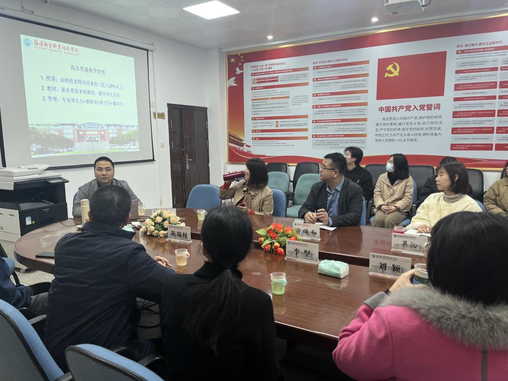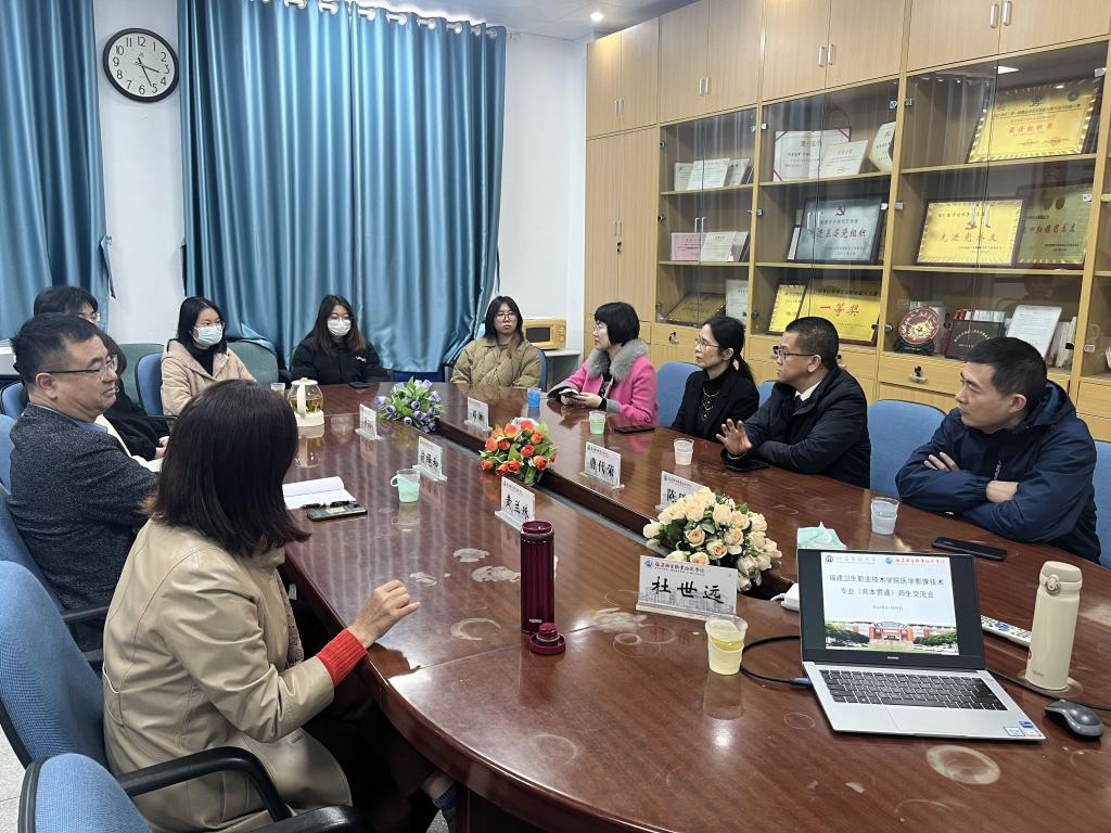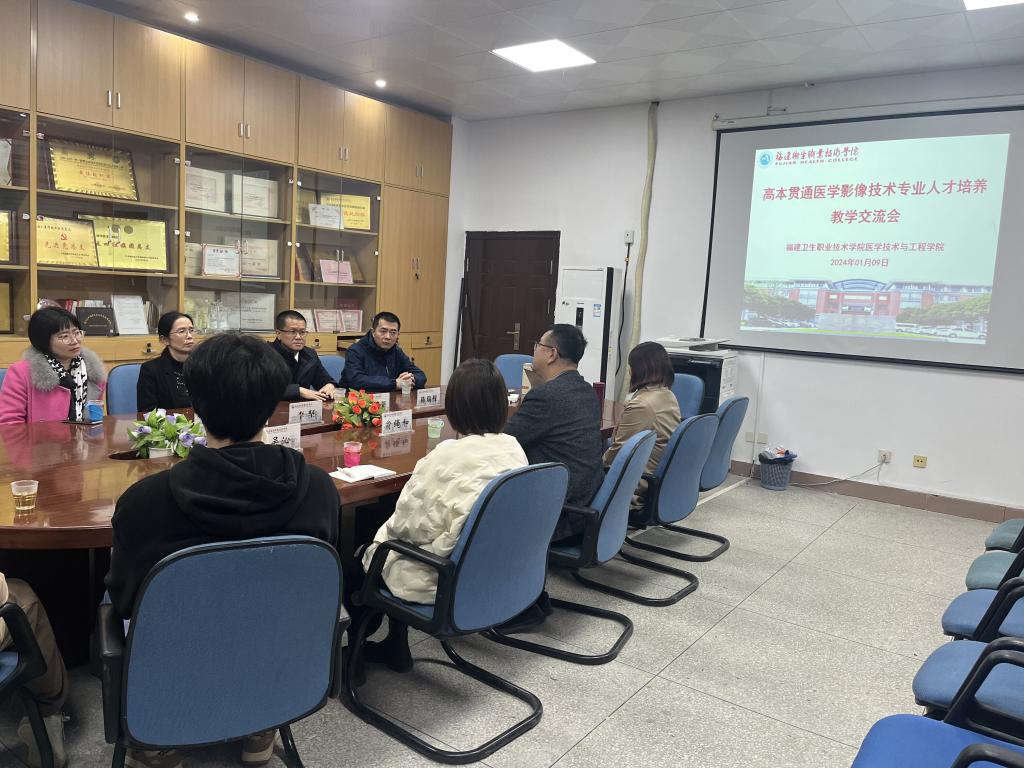 為進一步加強人才培養(yǎng)、專業(yè)建設(shè)、師資培育等方面的交流合作,2024年1月9日,福建醫(yī)科大學(xué)醫(yī)學(xué)影像學(xué)院曹代榮教授一行4人來校召開高本貫通醫(yī)學(xué)影像技術(shù)專業(yè)人才培養(yǎng)教學(xué)交流會。醫(yī)工學(xué)院院長翁繩和、教研室主任、專業(yè)教師、輔導(dǎo)員及四位高本貫通影像技術(shù)專業(yè)學(xué)生代表參加交流會。會議由教研室主任杜世遠主持。