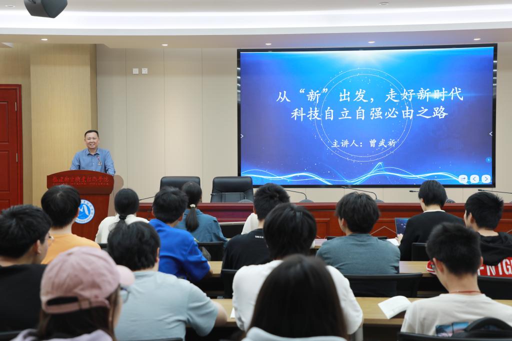 曾武祈從“戰(zhàn)略博弈:世界科技競爭日趨激烈”“乘風(fēng)破浪:我國科技機(jī)遇挑戰(zhàn)共存”“勇立潮頭:加快科技自立自強(qiáng)步伐”“凝‘青’聚力:彰顯科技強(qiáng)國青春擔(dān)當(dāng)”等四個(gè)方面出發(fā),深入分析當(dāng)前世界的科技競爭趨勢(shì),結(jié)合豐富案例闡述我國科技發(fā)展的機(jī)遇和挑戰(zhàn)。
