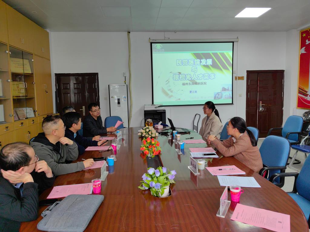 2024年度眼視光技術(shù)專業(yè)指導(dǎo)委員會于4月10日下午在醫(yī)學(xué)技術(shù)與工程學(xué)院三樓會議室召開。專業(yè)指導(dǎo)委員會成員福州東南眼科醫(yī)院副院長夏江勝,寶島眼鏡福建總經(jīng)理黃志華,福建省級機關(guān)醫(yī)院門診部主任林泰南,福州兒童醫(yī)院眼科主任高守銘,福建衛(wèi)生職業(yè)技術(shù)學(xué)院眼視光技術(shù)專業(yè)帶頭人王珊珊及其他眼視光專業(yè)教師出席并參加了本次會議。